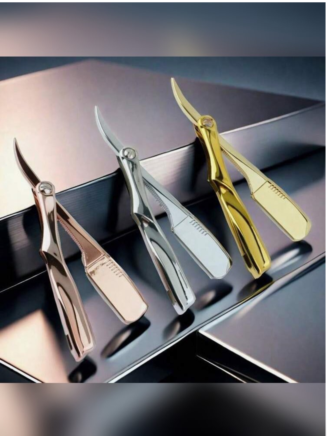 1pc Electroplated Vintage-Style Manual Folding Razor Holder For Men, Folding Beard Shaver, Hair Clipper, Head Shaver (Razor Holder Only, Blade Not Included) Multiple colors{GOLD/SILVER/ROSE-GOLD}