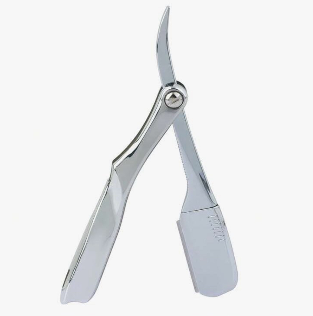 1pc Electroplated Vintage-Style Manual Folding Razor Holder For Men, Folding Beard Shaver, Hair Clipper, Head Shaver (Razor Holder Only, Blade Not Included)