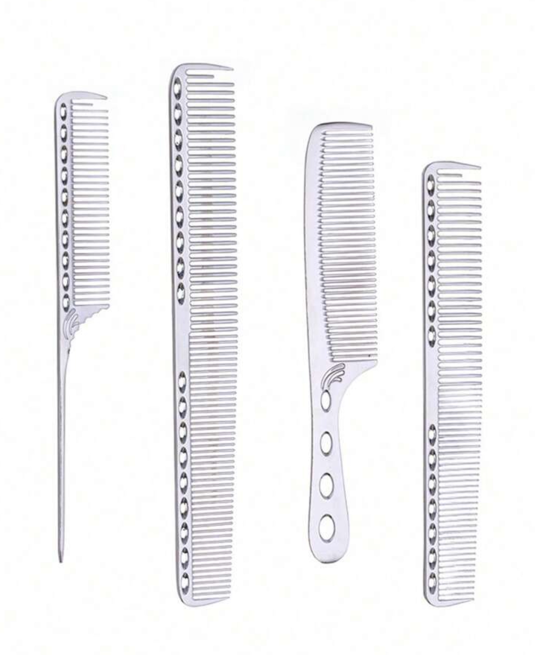 4pcs Hairdressing Comb Professional Barber Comb Metal Barber Comb Women Hair Comb Barber Grooming Comb Stainless Steel Beard Comb Hair Cutting Comb Mustache Combs Professional Aluminum Hair Combs Set: Long Cutting Comb, Short Styling Comb, Handle Comb, And Tail Comb Anti Static Comb Barber Hair Comb Set