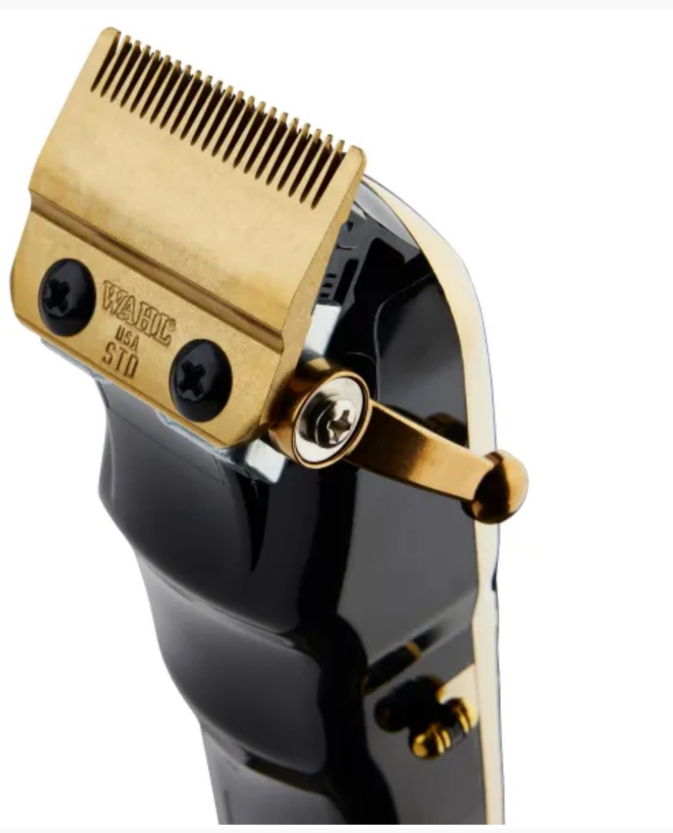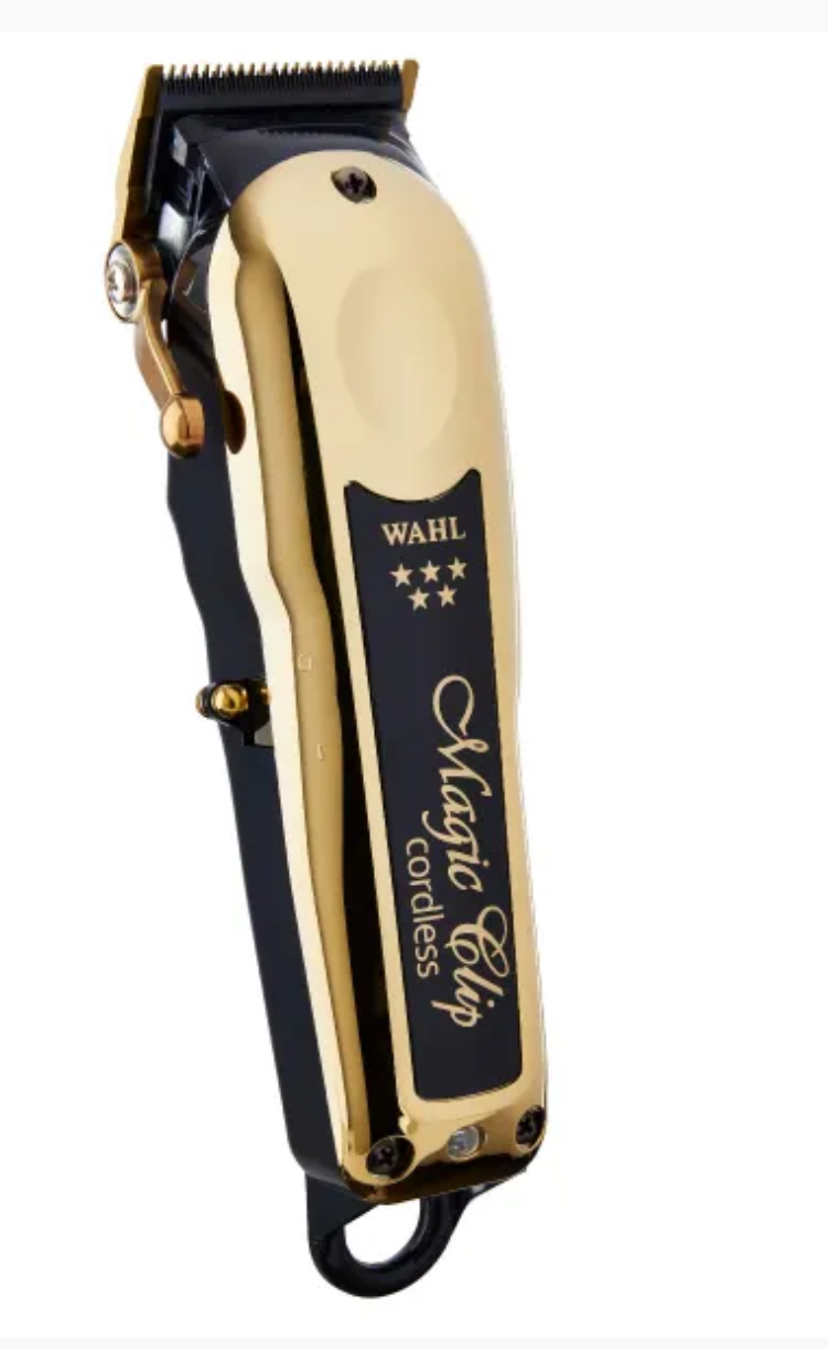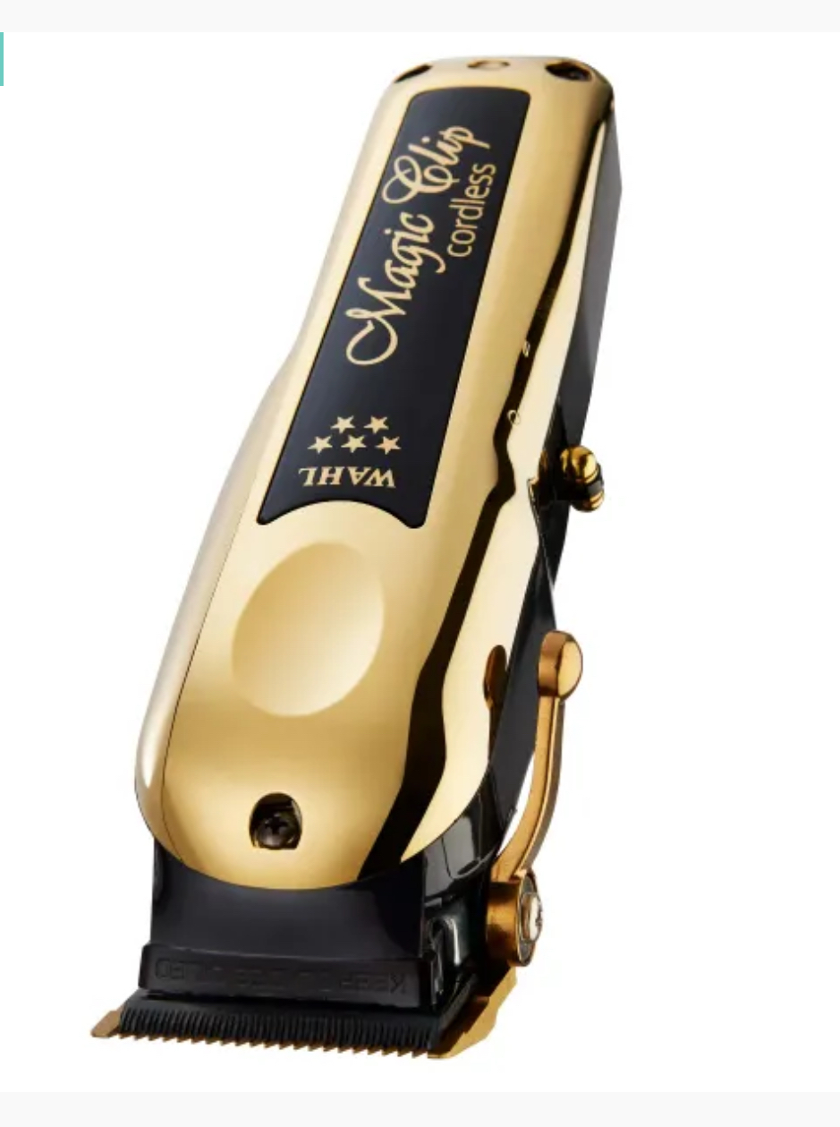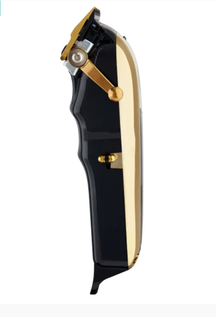 The 5-Star Gold Cordless Magic Clip® features American-made high-carbon steel blades with titanium and DLC coatings that are ultra-strong, rust resistant, and keep their cool